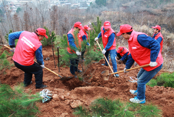 这次志愿植树活动历时半天时间,共栽植油松6000余株。